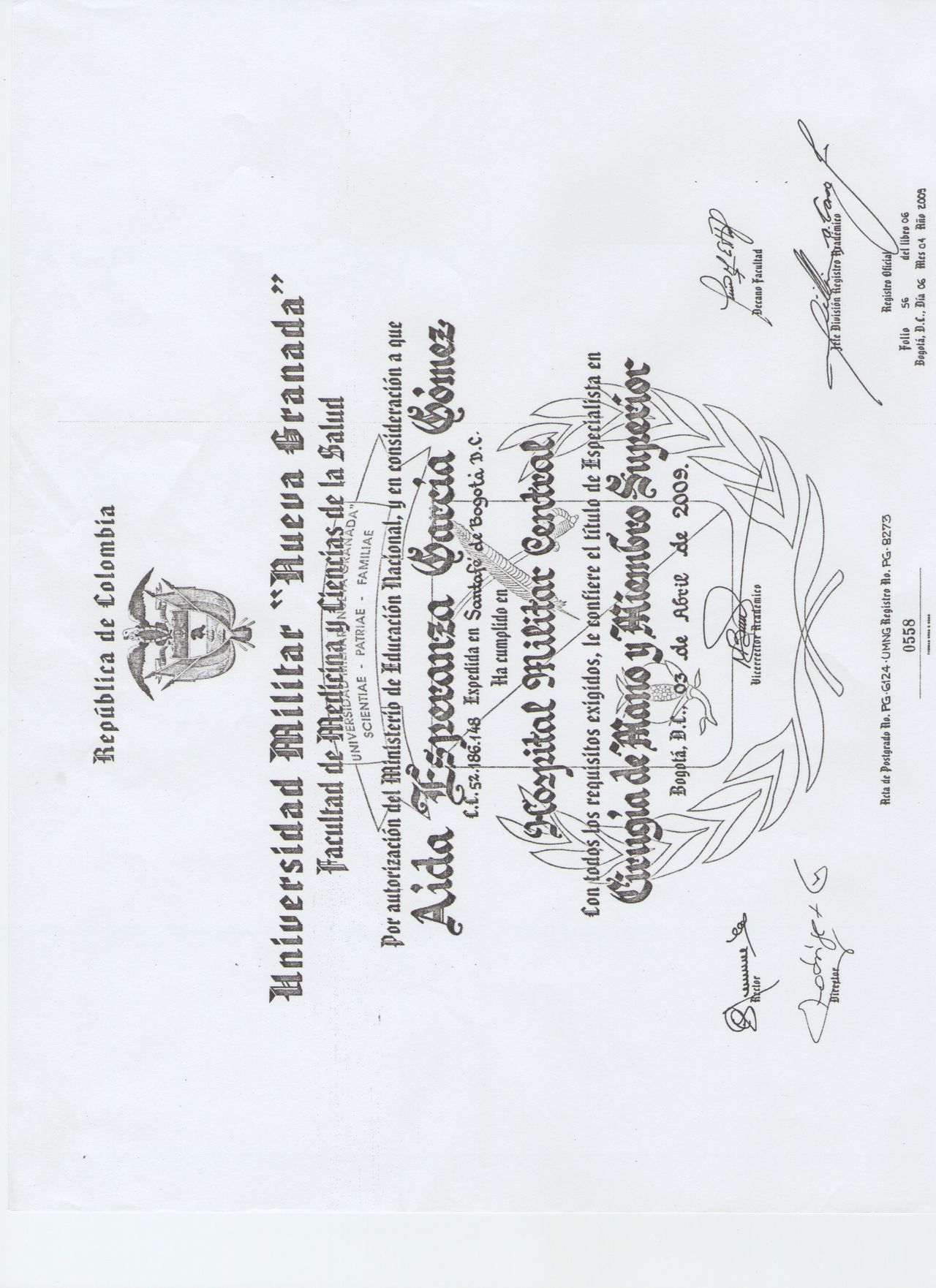 Soy ortopedista y cirujana de mano y miembro superior, formada en la Universidad Militar Nueva Granada y vinculada al Hospital Militar Central, con más de diez años de experiencia dedicados al diagnóstico, tratamiento y rehabilitación de patologías que afectan la mano, la muñeca, el codo y el hombro. A lo largo de mi trayectoria he tenido el privilegio de acompañar a cientos de pacientes en procesos complejos, lo que me ha permitido consolidar una práctica basada en el rigor científico, la actualización constante y la toma de decisiones responsables.
